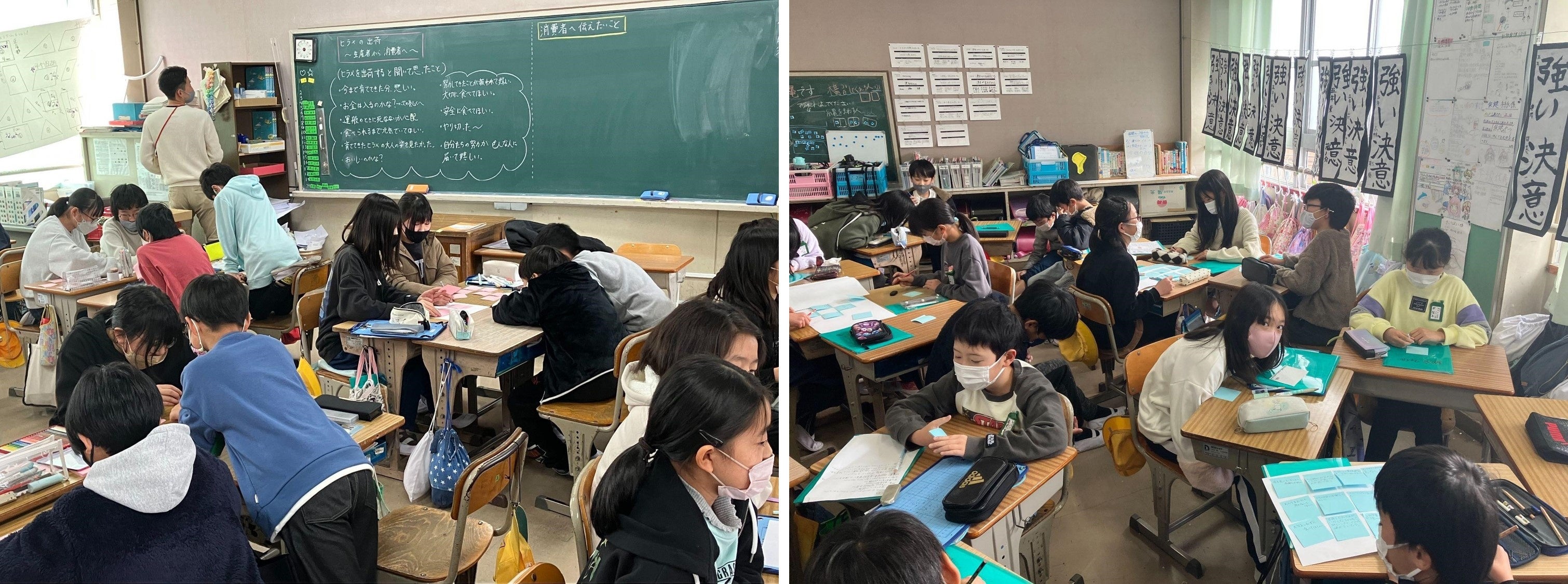授業に参加した児童からは、「もっとヒラメを大きく育てたかった」「生き物を育てることはとても大変だとわかった」「育ててきた人の気持ちをわかって食べてほしい」などの感想がありました。また、2月13日(月)に、出荷先である岡田浦漁業協同組合の方からは、ヒラメを試食していただいた際の様子をビデオレターで頂き、「とても美味しい。一生懸命育てたことがよく伝わってきた」と児童へのメッセージをいただきました。自分たちが一生懸命育てたヒラメを美味しく食べてくれている様子を見て、児童たちは達成感を感じられた様子でした。