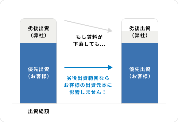 ※優先劣後割合はプロジェクトによって変動する場合がありますが、ファンドによっては、家賃保証を採用することでより安心できるようになっています。