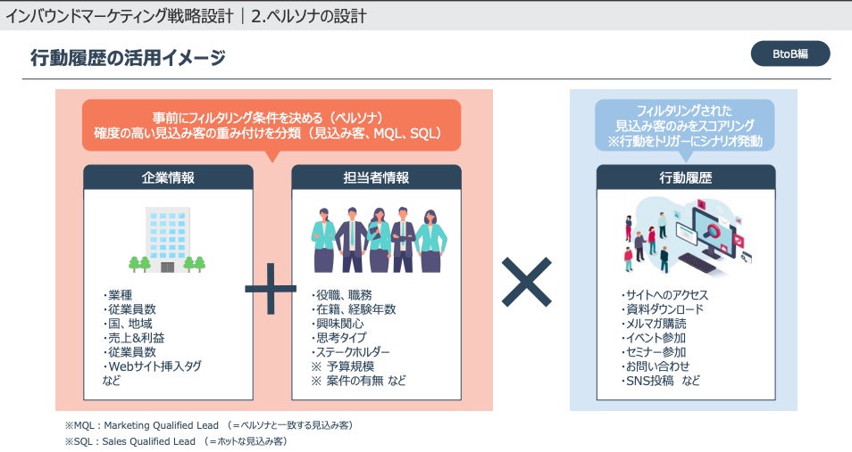 効果的なインバウンドマーケティングを実践するには、闇雲に情報を提供するだけではなく、ペルソナの興味、課題にあった内容を最適なタイミングで届けることが非常に重要です。