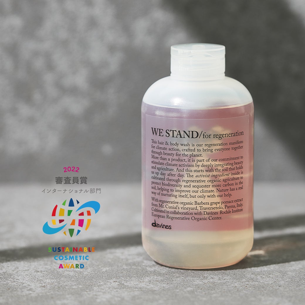 『ウィ スタンド ヘア アンド ボディウォッシュ』にはローデール研究所*³との取り組みの成果を結実させた成分*¹を初めて使用。再生型オーガニック農業を実践するMr.クニアルの農園のブドウを利用したエキス*¹が配合されています。