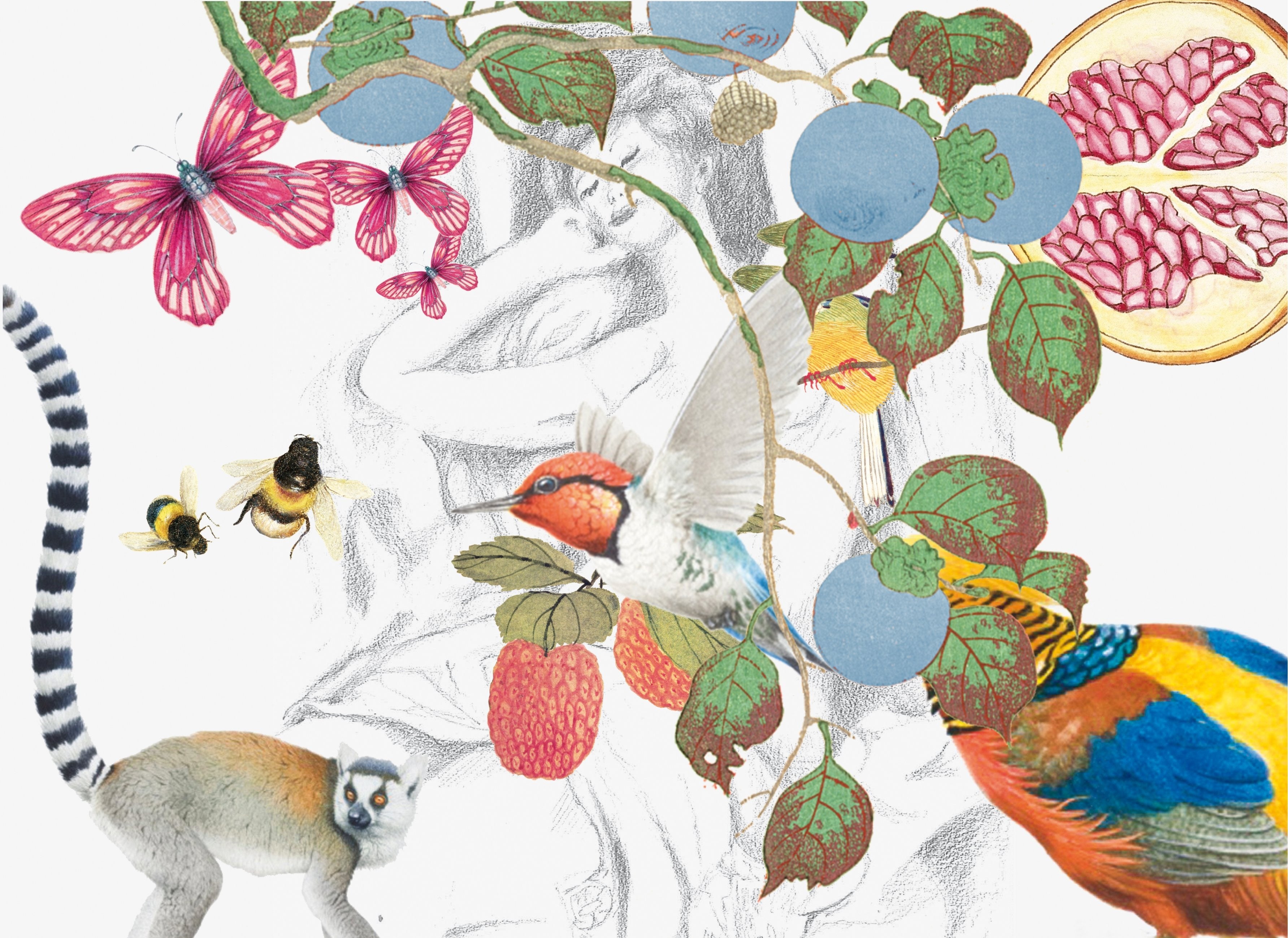商品パッケージに施されたデザインには全て、女性の姿と動植物のイラストが描かれています。自然との共生を表すこのデザインは、女性が白黒で描かれ、動植物は多種多様且つ色鮮やかに描かれています。
