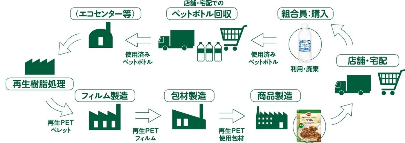 日本生活協同組合連合会(略称:日本生協連、代表理事会長:土屋敏夫)は、生協で回収したPETボトルをコープ商品のパッケージの原料の一部として再生利用する取り組みを拡大します。この取り組みは「CO・OP ふっくら卵のオムライス」などで先行して実施していましたが、3月より「CO・OPビーフカレー」を追加し、その他の商品に関しても9月より順次拡大していきます。
