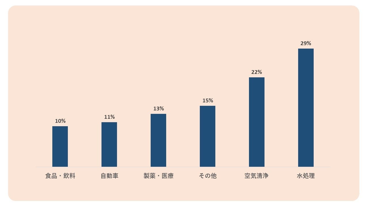 エンドユーザー産業に基づいて、水処理、食品・飲料、医薬品・医療、自動車、空気清浄、およびその他の最終用途に分類されます。
