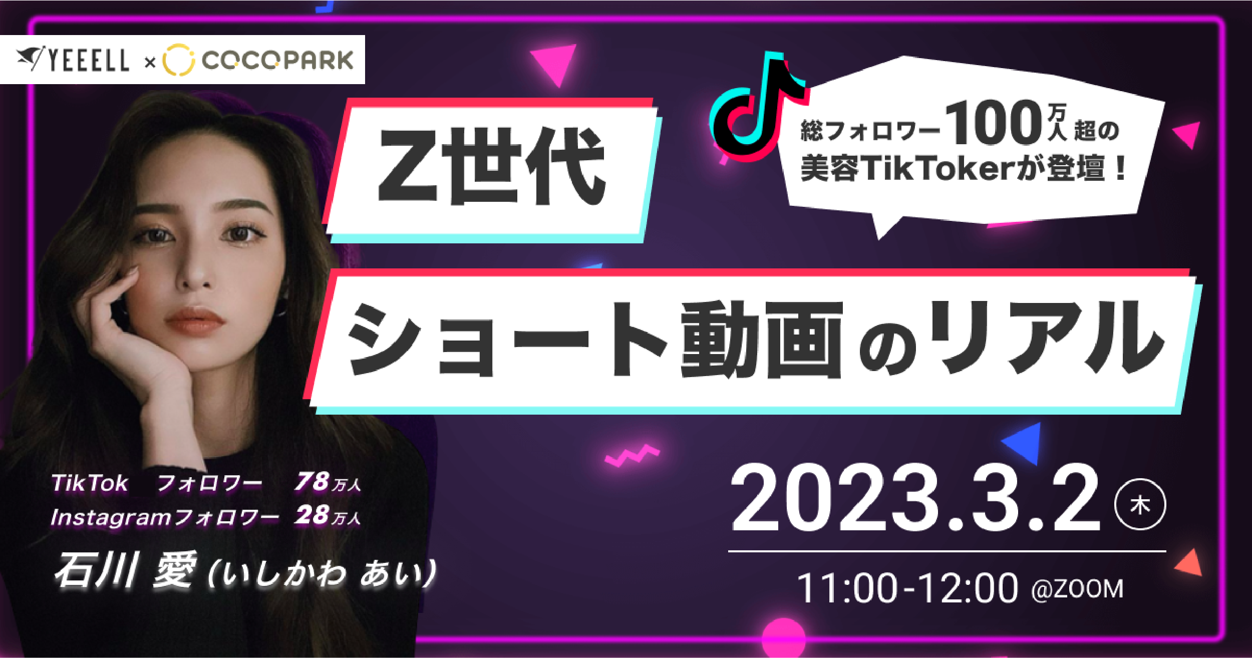 総フォロワー100万⼈超の美容インフルエンサー、⽯川 愛さんをお迎えして、ショート動画でバズるためのヒントや、TikTok運⽤において気をつけたいポイントについてQA式にお話し頂きます。