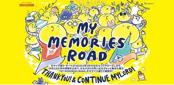 現在、営業終了に向けたクローズ企画「MY MEMORIES ROAD」を、営業終了日の3月25日(土)まで実施中。お客さまからお寄せいただいた同区画での思い出を人気イラストレーター「さかがわ成美」氏がイラスト化し、モザイク通りの壁面パネルに掲出しています。※新宿ミロード本館は、4月以降も通常通り営業を継続いたします。