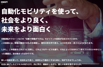 - M-BIC 2023 のコンセプトは、「自動化モビリティを使って、社会をより良く、未来をより面白く」です。単なる収益性だけではなく、「社会や顧客の生活や体験がどのように変化するかを具体的に描けているか」といった社会の切り口でもアイデアが評価されるのが本コンテストの特徴です。