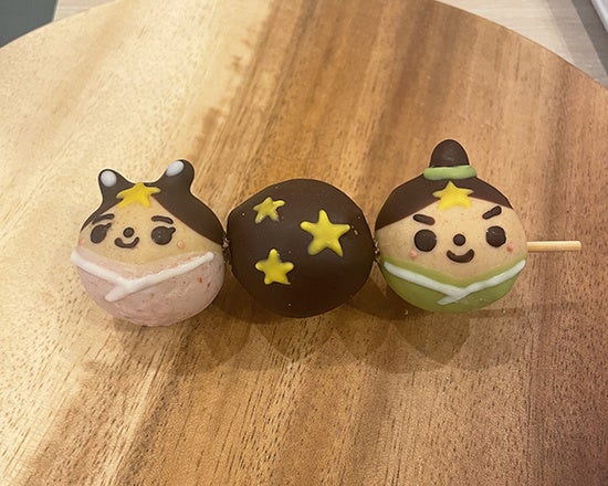 織姫と彦星、その間には天の川をイメージした星のドーナツをはさんでいます。