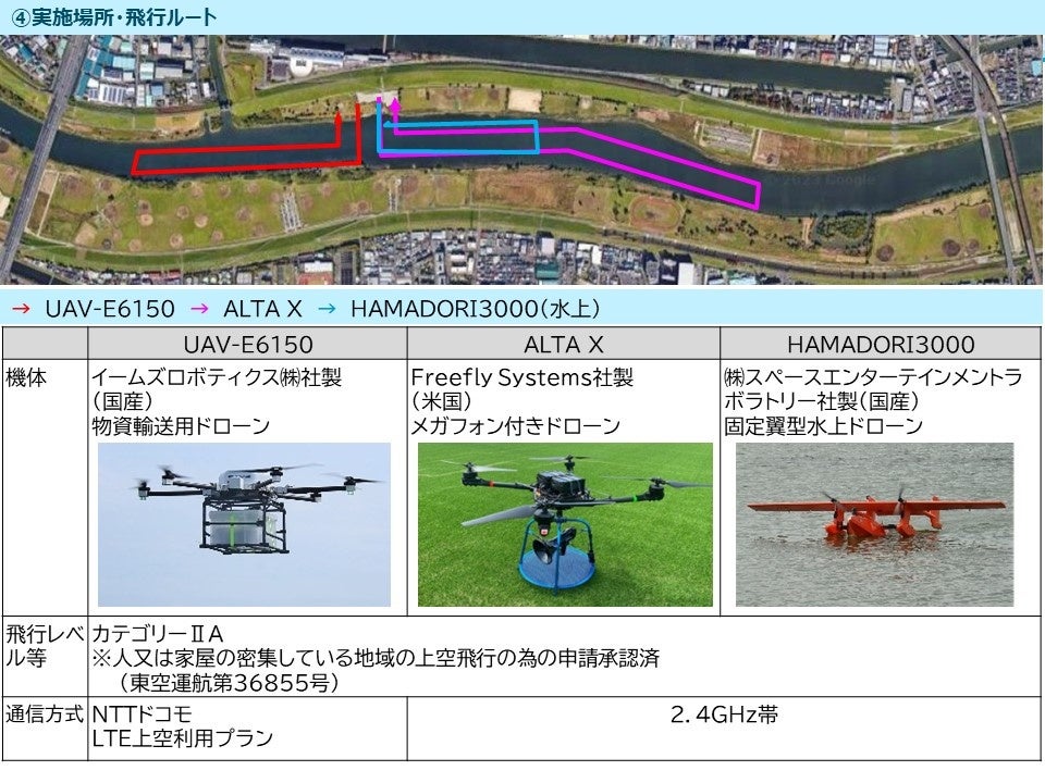 (株)eロボティクス茨城(茨城県かすみがうら市、代表:板羽昌之)と(一社)環境ロボティクス協会(東京都港区、事務局長:勝部善之)は、(公財)福島イノベーション・コースト構想推進機構 福島ロボットテストフィールド(福島県南相馬市)の協力を得て、国土交通省 関東地方整備局 荒川下流河川事務所(東京都、事務所長:出口桂輔)と合同で、荒川下流河川内で複数の大型産業用ドローンを同時飛行させた場合の動態管理実証試験を行います。荒川下流河川事務所は、荒川下流(都市部)における「荒川下流河川上空利用ルール」の策定を目指しています。