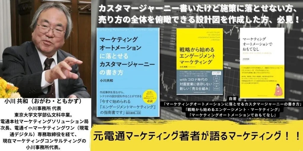 2017年6月「マーケティングオートメーションに落とせるカスタマージャーニーの書き方」出版以降、70以上のジャーニーを作成してきた著者が今改めて施策の全体設計図となるカスタマージャーニーの書き方とその意義を説明します。