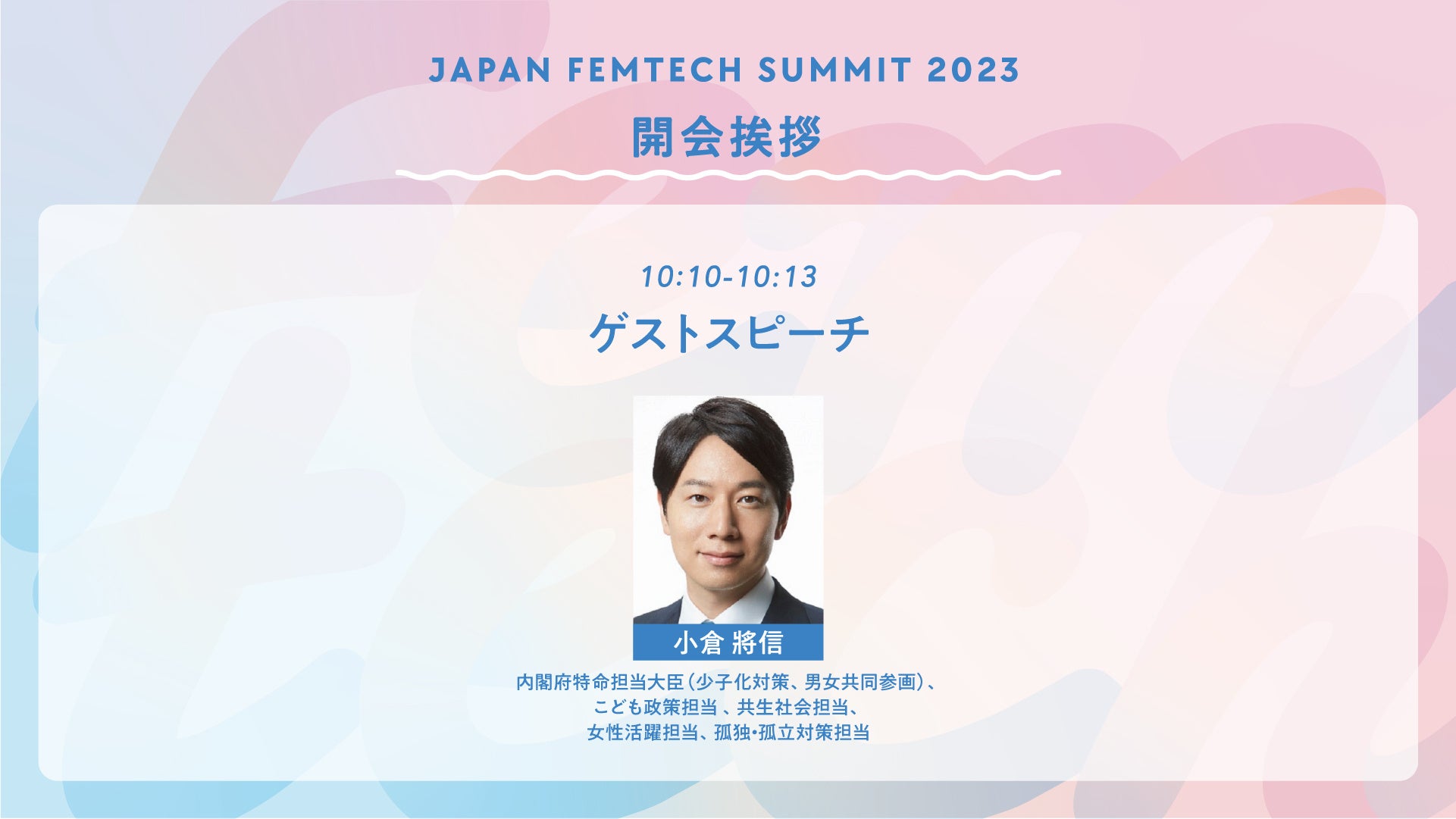 そして、小倉將信 内閣府特命担当大臣からビデオメッセージをいただき、『JAPAN FEMTECH SUMMIT 2023』への期待を感じる、貴重なお言葉を頂戴いたしました。