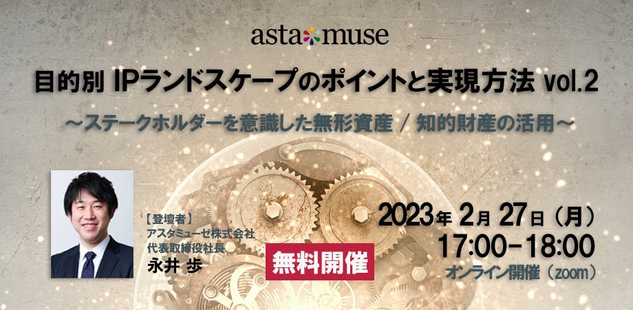 【タイトル】目的別 IPランドスケープのポイントと実現方法 vol.2 ~ステークホルダーを意識した無形資産/知的財産の活用~