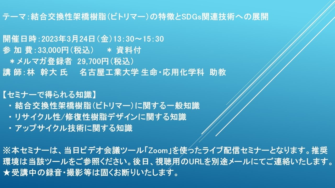 テーマ:結合交換性架橋樹脂(ビトリマー)の特徴とSDGs関連技術への展開