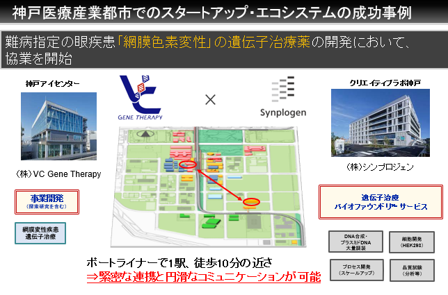 この度、神戸医療産業都市の進出スタートアップである株式会社VC Gene Therapyと株式会社シンプロジェンは厚生労働省が難病指定した眼疾患「網膜色素変性」の遺伝子治療薬の開発案件において、協業を開始しました。