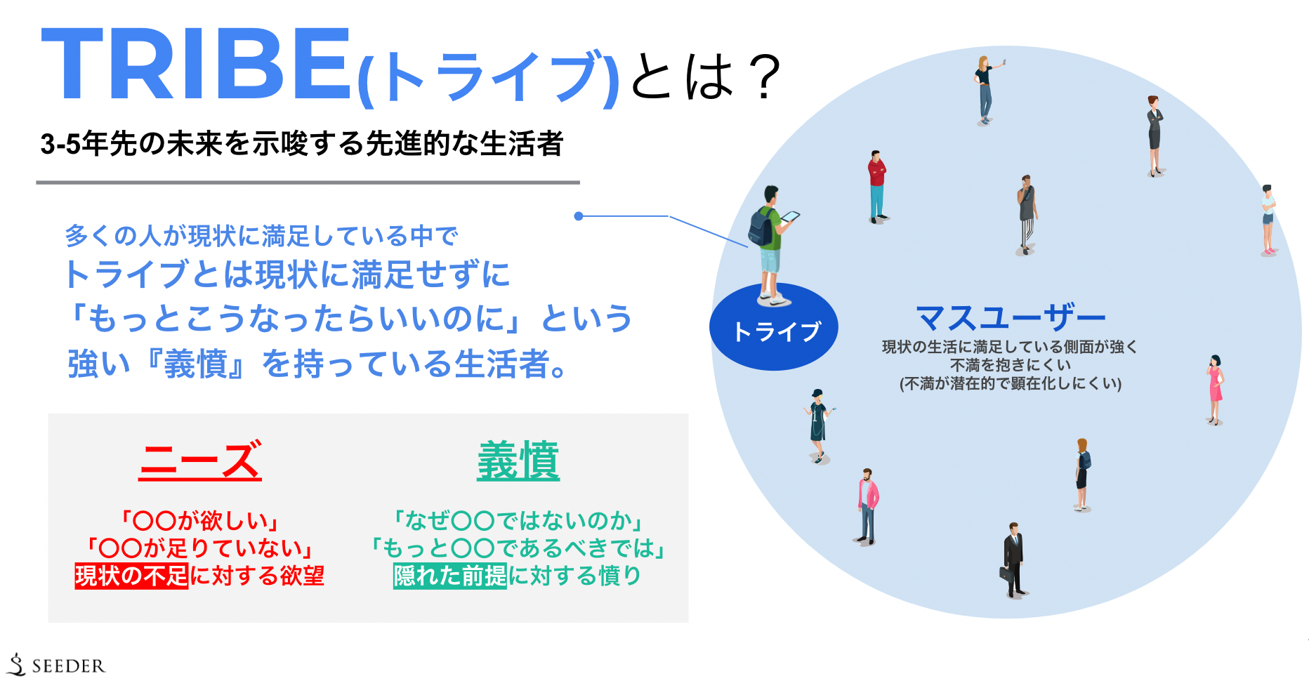 SEEDERは、近い未来に起こり得る先進的な価値観や行動様式を持つ生活者を独自のアプローチで発見・定義し未来洞察を行います。