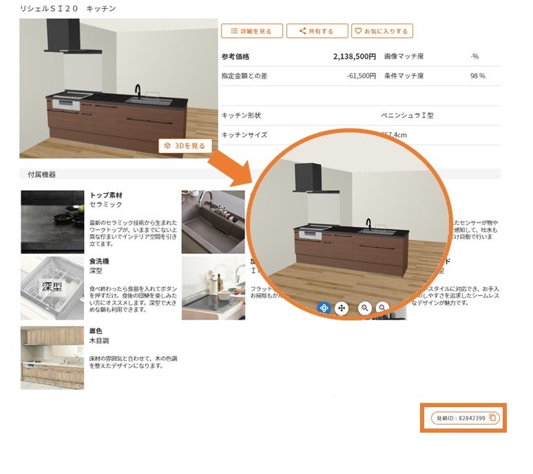 出てきたプランは、3D画像で360°商品を確認することができます。また、プランごとにあらかじめ見積りIDが発行されているため、LIXILの営業やショールーム、コントラクターさまが利用する提案見積発注システムとも連動し、スムーズに正式な見積もりをお出しすることができるようになります。