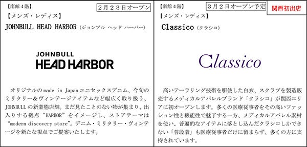 新たな20店舗がオープン。フルラインナップが揃う店舗、関西旗艦店の店舗、話題性があり個性的な店舗、お洒落で誰もが憧れる店舗などが集まり、ショップ&レストランが更にパワーアップします!