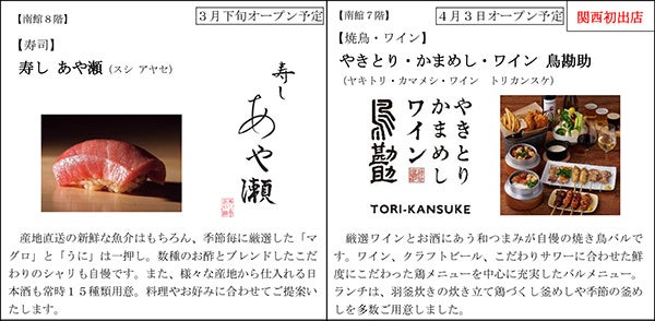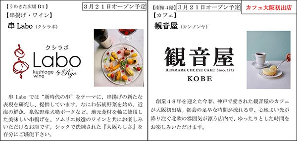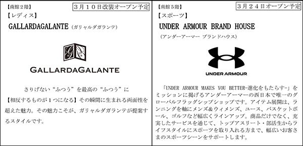 新たな20店舗がオープン。フルラインナップが揃う店舗、関西旗艦店の店舗、話題性があり個性的な店舗、お洒落で誰もが憧れる店舗などが集まり、ショップ&レストランが更にパワーアップします!