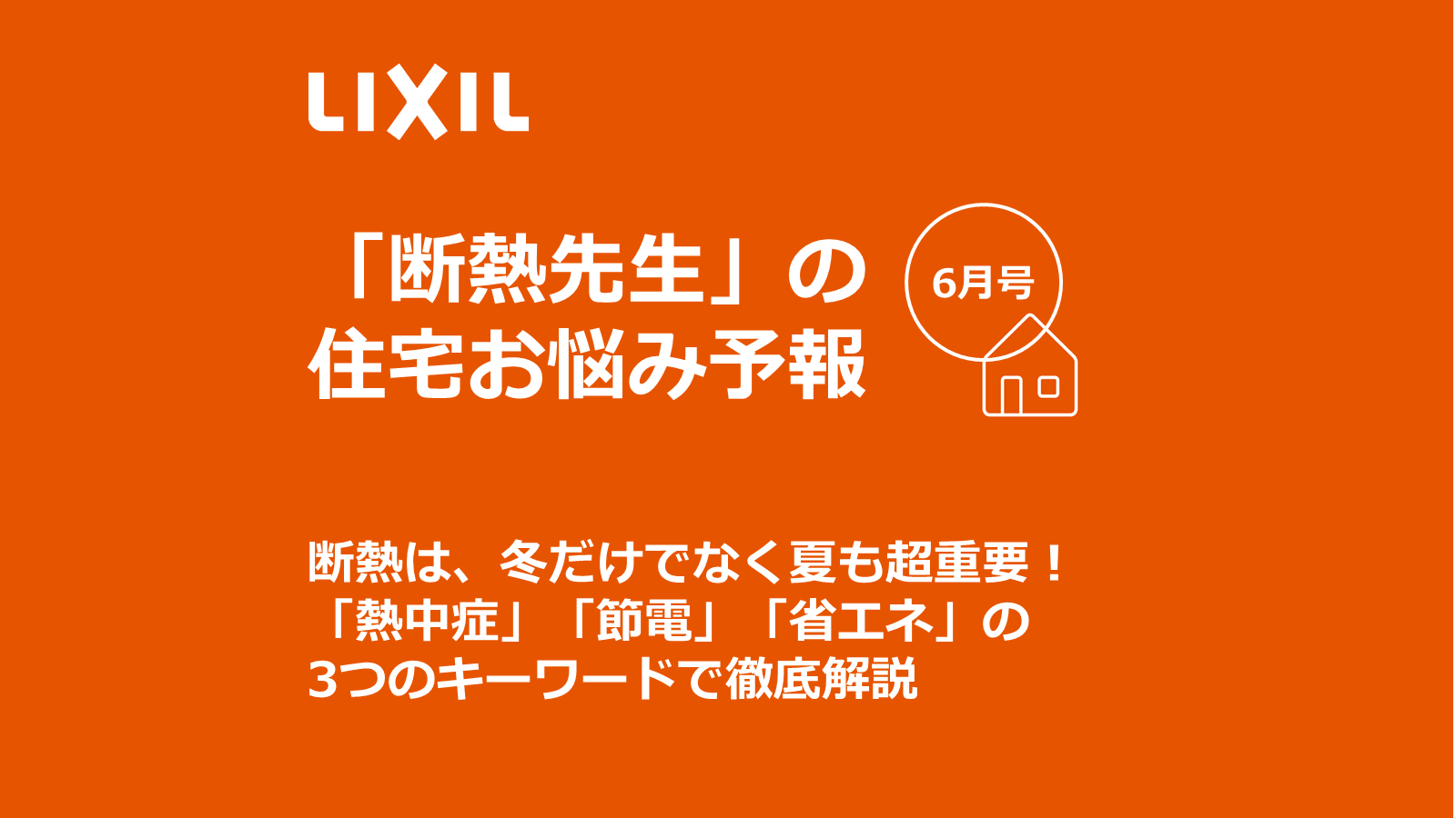 いよいよ夏本番。段々と暑くなってくるこの時期に気をつけたいものと言えば「熱中症」。また、エアコンの使用も増え、「節電」や「省エネ」に悩む方も増えるのではないでしょうか。そんなお悩みも、実は「住宅の断熱」で解決できるんです。「断熱先生」こと古溝洋明が7月~9月の住宅お悩み予報として、ポイントを解説します。