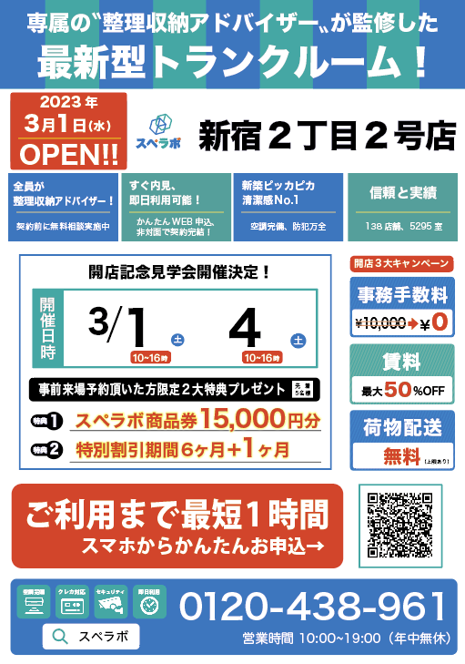 オープンに合わせ3月1日(水)4日(土)に見学会を実施しますので、ぜひ【スペラボ・新宿2丁目2号店】にお越しくださいませ。