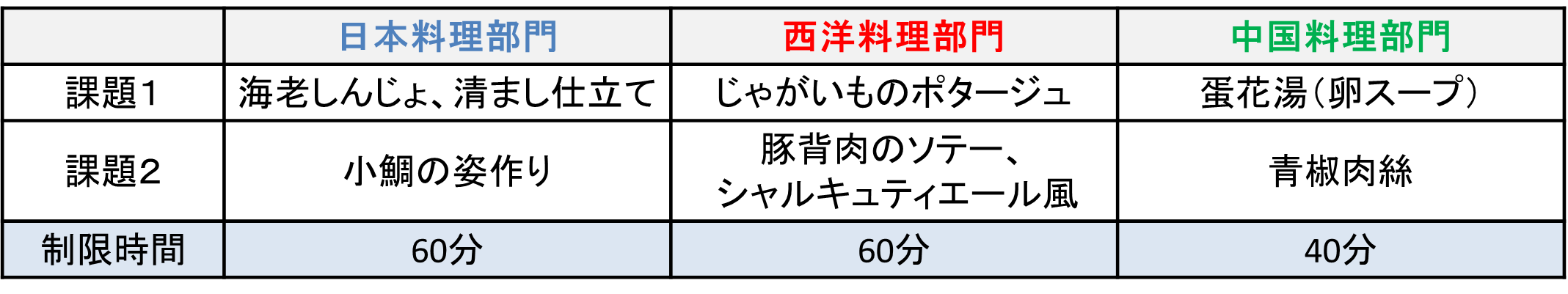 ・出場者 :地区大会通過者計53人(日本料理部門20人、西洋料理部門20人、中国料理部門13人)