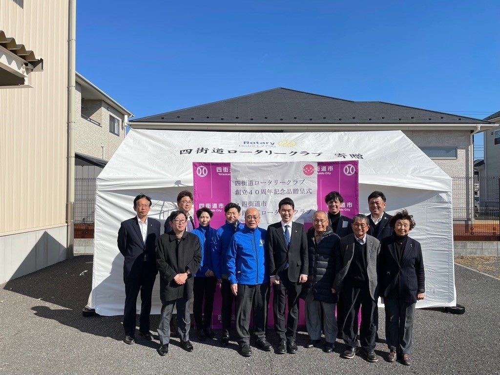 四街道ロータリークラブ創立40周年記念事業として、災害発生時における対策本部や仮設の救護スペースなどで活用できる屋外用の大型テント2基を寄贈いただき、心より感謝申し上げます。
