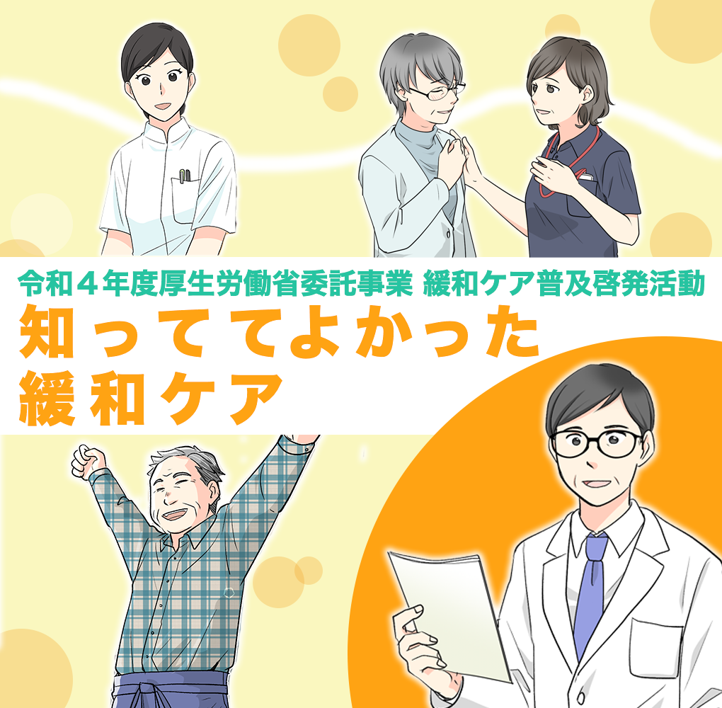 特定非営利活動法人 日本緩和医療学会(事務局:大阪市西区、理事長:木澤義之)は、令和 4 年度厚生労働省委託事業 緩和ケア普及啓発活動において、「知っててよかった緩和ケア」をテーマに、市民の皆様ならびに医療従事者に対して緩和ケアの普及啓発を目的として、「見て役に立った」「知っておいてよかった」と思っていただけるようなコンテンツを制作しております。