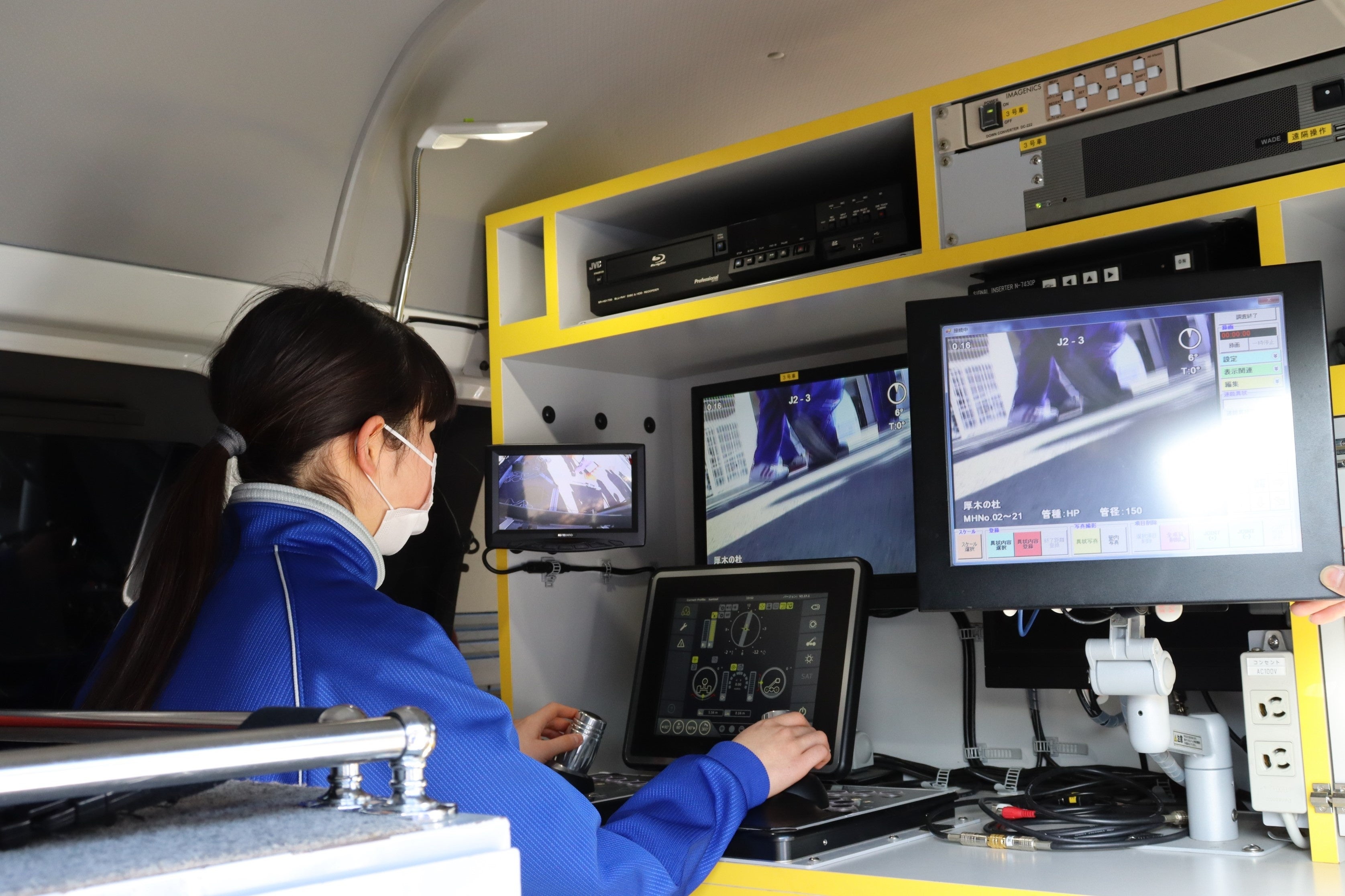 また、カメラを搭載した車両を使って、下水道管内部をモニター越しに操作し観察し、調査の方法を体験します。