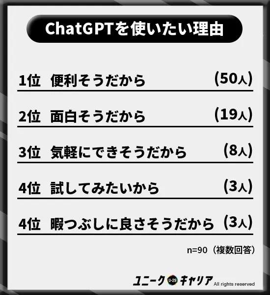 <ChtaGPTを使いたい理由の1位は「便利そうだから」>