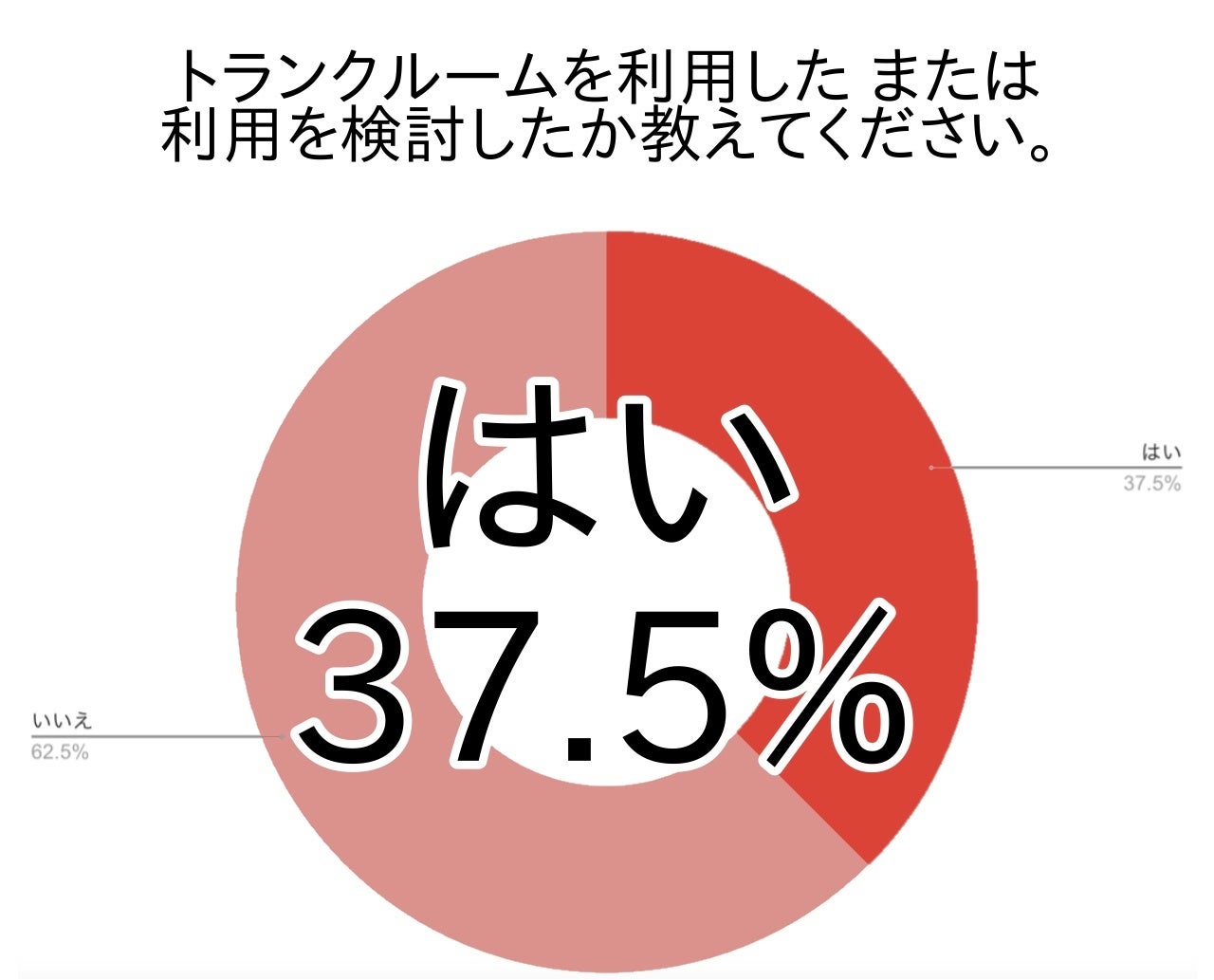 アンケートでは、4割弱(37.5%)の方がトランクルームを利用した、または利用を検討したことが分かりました。