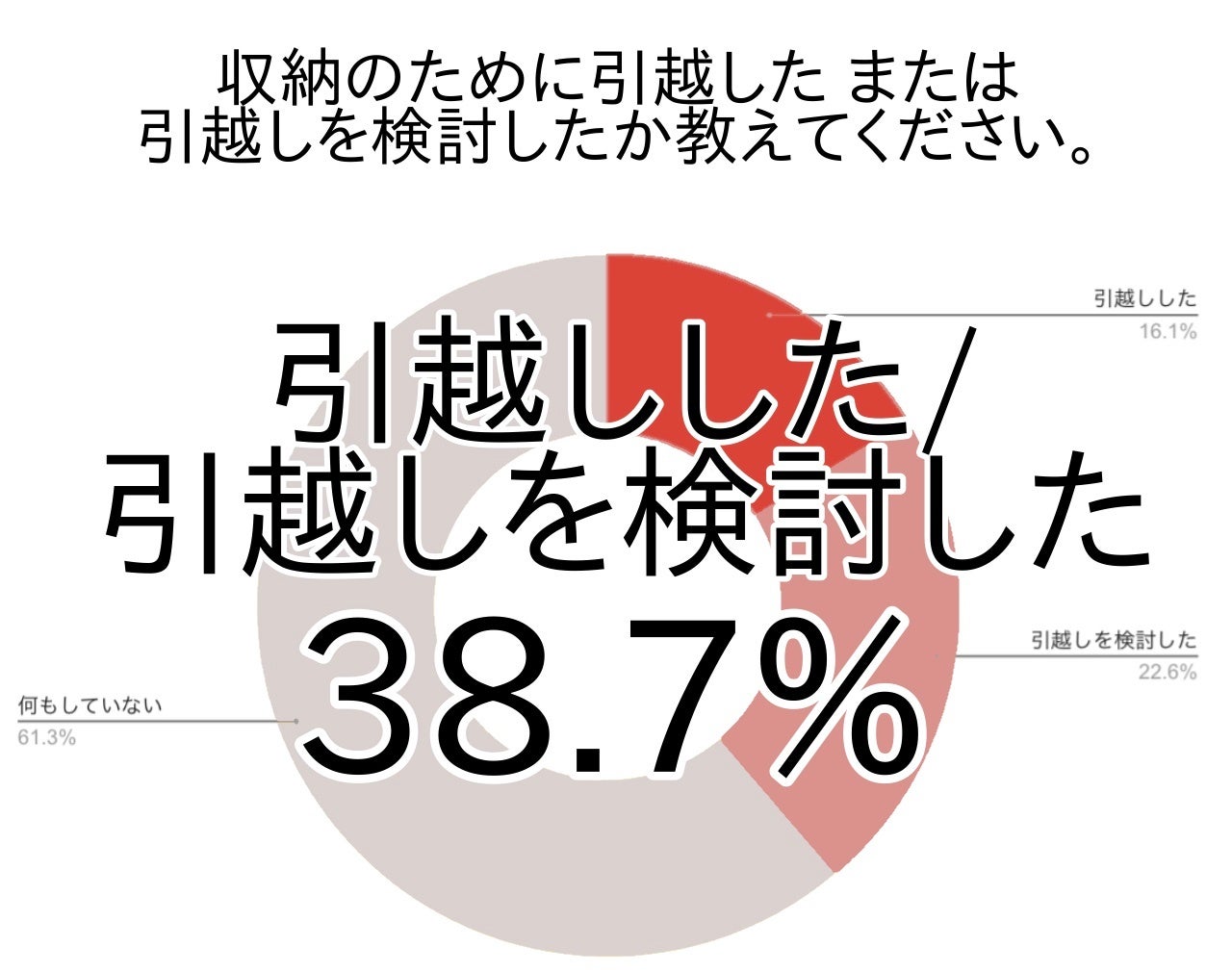 アンケートでは、収納のために「引越しした(16.1%)」・「引越しを検討した(22.6%)」と答えた方が合わせて約4割(38.7%)であったことが分かりました。半数弱もの方が住まいを変えることも考えるほど、収納スペースの悩みは暮らしの不便さ・ストレス・生活の質に大きく関わるものであると言えるでしょう。