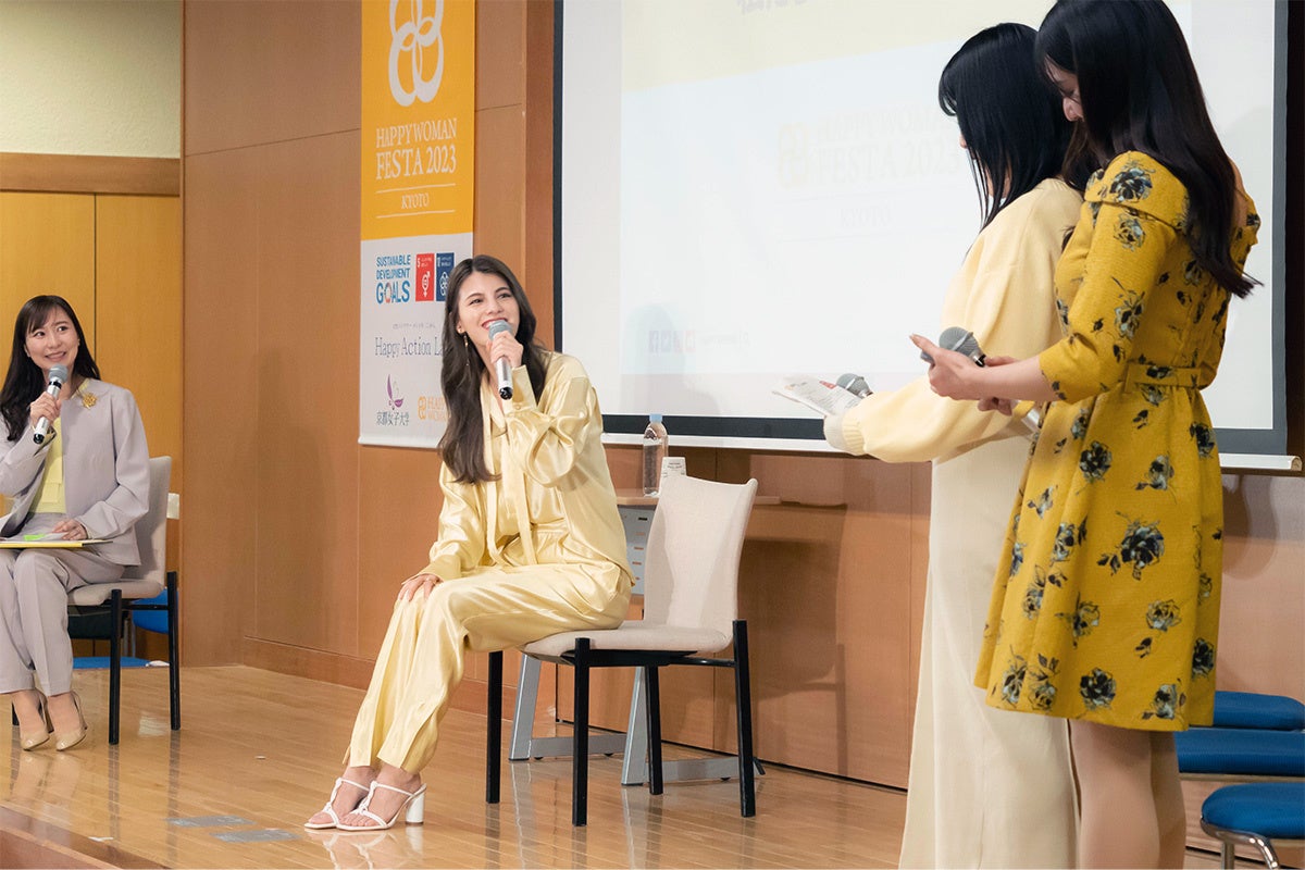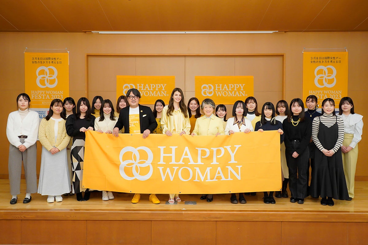 HAPPY WOMAN実行委員会(東京都港区/実行委員長:小川孔一)は 京都女子大学(京都市東山区/学長:竹安栄子)との共催で3月8日の国際女性デーを前に「女性の生き方を考える日」と題し、「HAPPY WOMAN FESTA KYOTO 2023」を2月25日(土)に京都女子大学にて開催しました。トークセッションではファッションモデルでありながらコスメブランドをプロデュースする実業家としても活躍するMAGGYさんが登壇。
