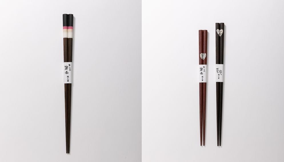 (写真右) 山中塗和田瑾齋作 乾漆卵殻ハート紋夫婦箸