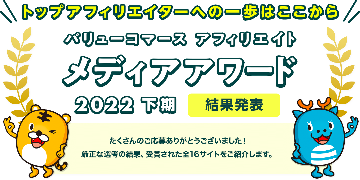 バリューコマース株式会社(本社:東京都千代田区、代表取締役社長 最高経営責任者:香川 仁)は、2022年9月から応募受付を開始した下期のメディアアワードについて、厳正なる審査の結果、全16サイトを選考しました。今回のメディアアワードは、アフィリエイトを始めて間もない方も含め、多くの方から応募がありました。そのなかから、各賞に選ばれた優秀サイトを以下に発表します。