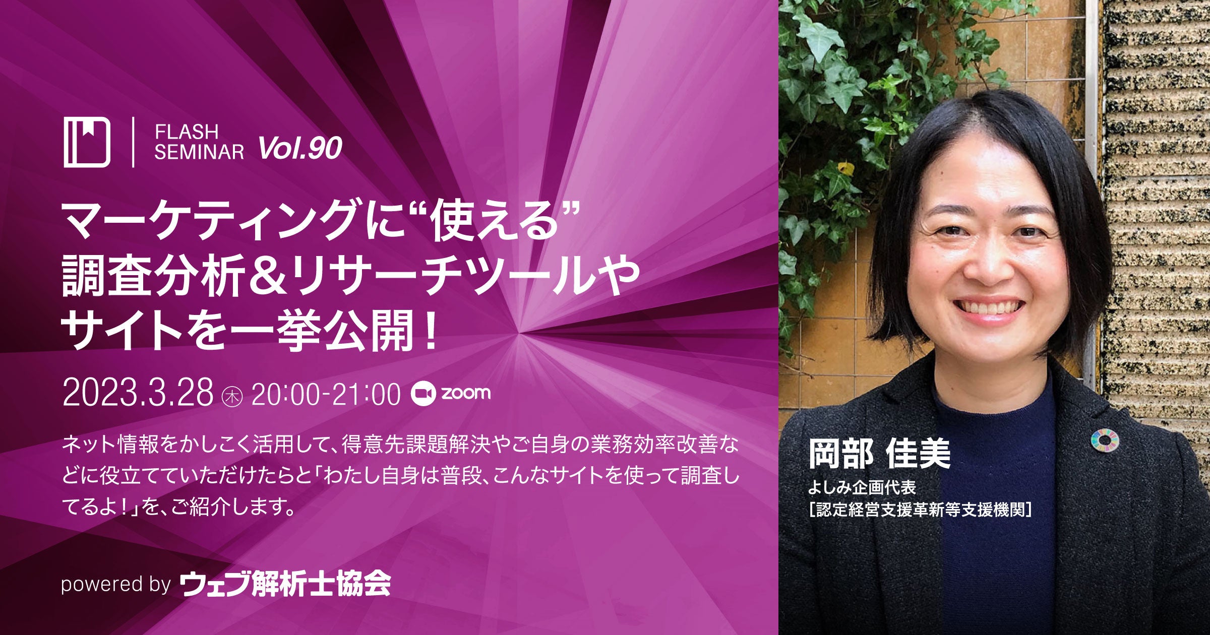 Flashセミナーは、ウェブ解析士協会のLearning+部が主催するセミナーです。