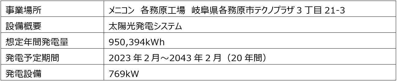 株式会社メニコン各務原工場における寄付型のコーポレートPPA(自家発電サポートサービス)のサービス開始について
