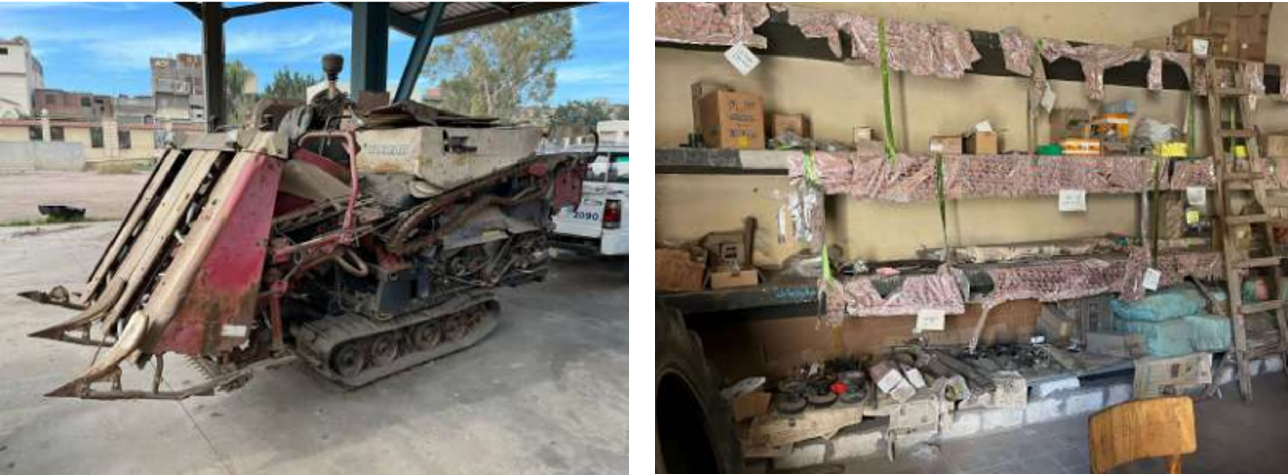 今回訪問した11か所の貸出センターでは、修理用の部品供給が行き届かないために、稼働していないコンバインやトラクタが多数見受けられました。