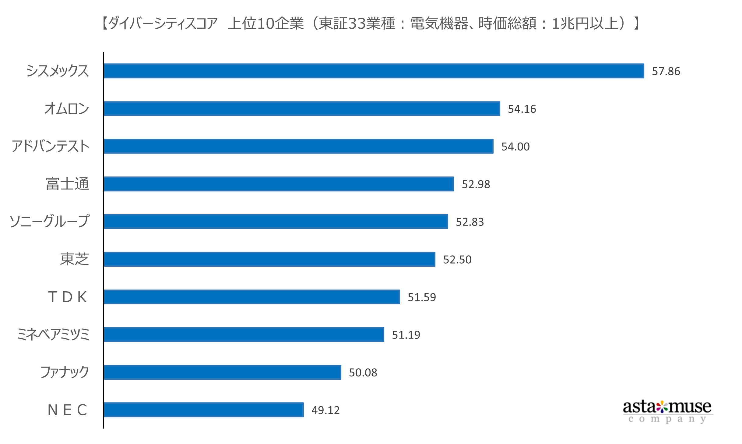 図1:「ダイバーシティ」スコアランキング(東証33業種:電気機器、時価総額1兆円以上)