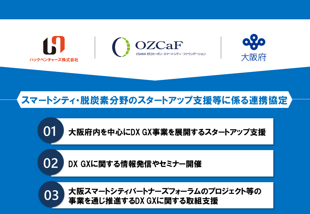 今後、本連携等を通じ、スマートシティ・脱炭素分野における大阪府内のスタートアップの新事業創出及び成長促進を後押ししてまいります。