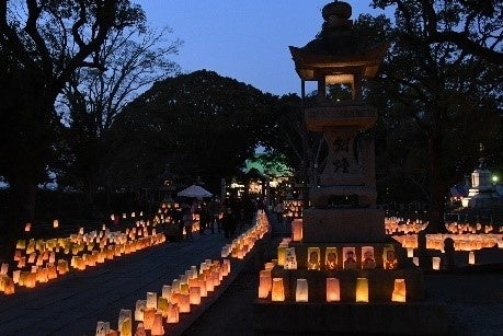 3月11日(土)に「水天宮恋ものがたりライトアップコンサート&灯明まつり」を開催します。全国総本宮水天宮の境内と筑後川河川敷に灯明を飾り、本殿をライトアップした中でコンサートを実施します。