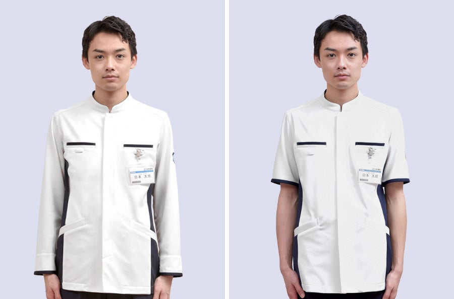 新しいユニフォームは、機能性・機動性が高く、医療従事者として信頼できる印象を与えるケーシースタイルを採用しました。左腕には日本調剤のロゴマークが刺繍されており、一目で日本調剤の従業員であることが判別できます。