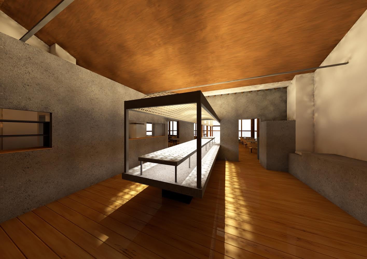 パン棚は蔵をイメージした空間で薄暗くつくり、大分の竹細工の照明がパンを照らします。