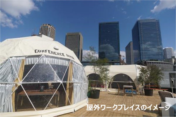 アウトドアリビングをテーマに、ウェルビーイングな屋外ワークプレイスが登場します。大型テントや可動式のテーブル・チェア、通信環境を整備し、どなたでも自由に屋外ワークを体験していただけます。