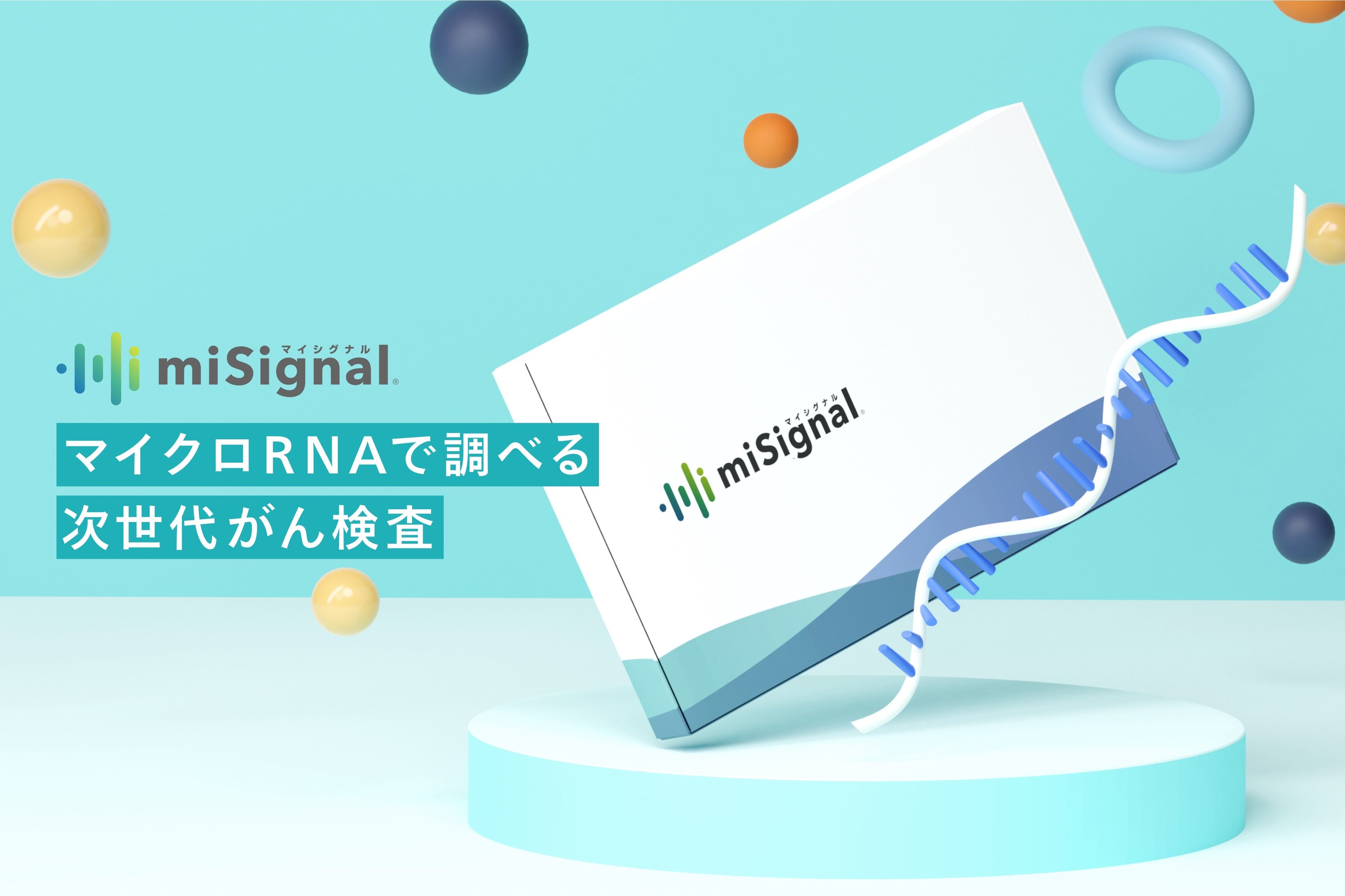 miSignal®️(マイシグナル)は、がんの発症や進行、転移に重要な役割を果たすマイクロRNA(以下miRNA)に着目したがんスクリーニング検査です。独自の技術により尿中の微量なmiRNAを効率よく捕捉し、早期のがんリスクも高い精度で検出します。本サービス最大の特長は“痛みがない”という点です。医療機関へ尿を提供するだけで、負担なく気軽にがんのリスクチェックを行っていただけます。詳細はWebサイト(http://misignal.jp/)をご覧ください。