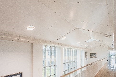 「地震大国の日本で相次ぎ起きる天井落下事故をなくしたい」という想いから始まったプロジェクトにより、吊り金具が不要で、多様な空間に対して自在に設置できる新しい天井システムが生まれました。