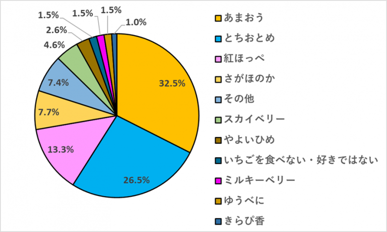 - 好きないちごの品種は、「あまおう」が最多