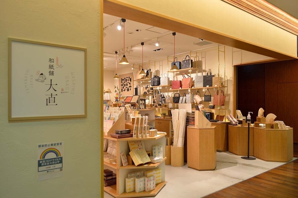 「丸の内 和紙舗大直」は、千年続く山梨の和紙・障子紙の産地で和紙製品の企画・生産・販売を手掛ける和紙メーカー、株式会社大直(本社:山梨県市川三郷町/代表取締役:一瀬美教)の直営店舗です。