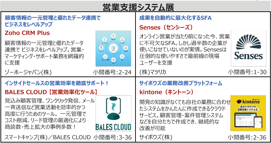 【営業・マーケ】ITソリューション総合展 大阪’23 出展製品・サービス(※一部抜粋)