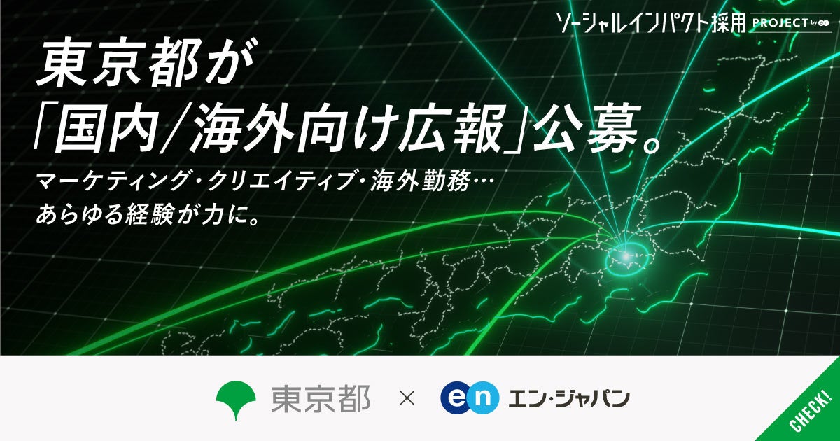 都の行財政の基本的な計画及び総合調整、重要な施策の企画立案、報道機関との連絡調整、都市外交の推進に関する事務等を行う政策企画局。その中の「戦略広報部」は2022年春に全庁横断型の広報・PR組織として発足しました。都の政策を効果的に発信するための戦略広報業務を担う「戦略広報部」では、発足当初より積極的に民間出身者の公募を実施。これまでも広報・PRのスペシャリストが続々と入庁しています。さらに東京都の戦略広報を加速させていくため、エン・ジャパンを通し、戦略広報部のメンバーを複数名公募することになりました。