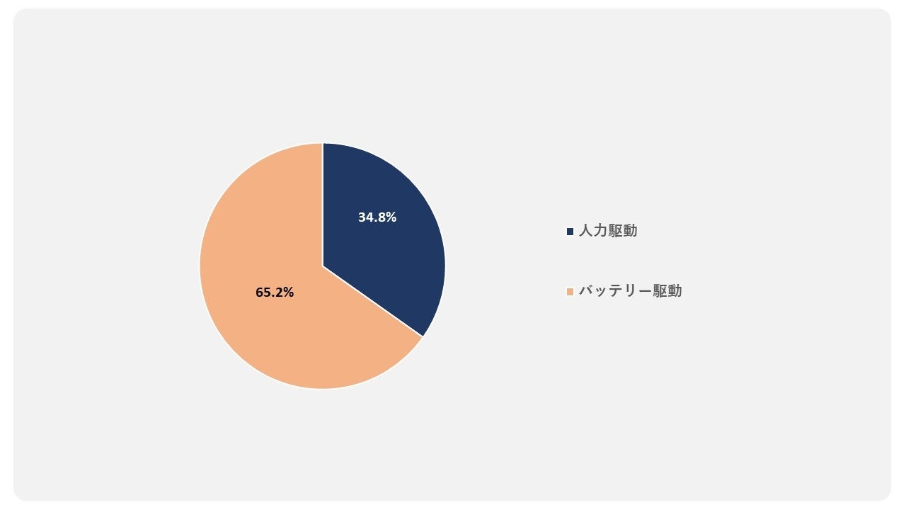 推進タイプに基づいて、市場は人力駆動とバッテリー駆動に分割されます。 これら 2 つのセグメントの中で、バッテリ駆動型は 2022 年に 65.2% の最高の市場シェアに貢献しました。これは、都市交通に関連する環境問題を軽減できる低エネルギー消費の結果です。