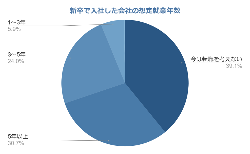 新卒で入社した会社の想定就業年数を聞いたところ、6割以上が入社前から転職を想定していることがわかりました。